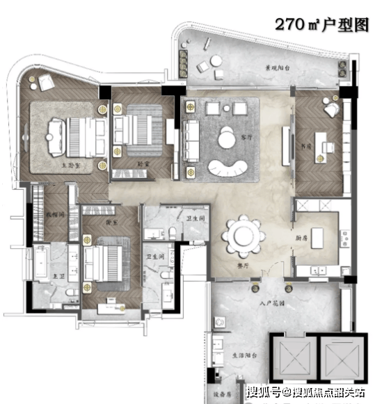 1. A户型:王牌户型 270㎡环幕江景四房。该户型布局方正,空间开阔,配备约9米超大邮轮式阳台,一线望江无遮挡,能够最大化享受三江汇聚的绝美景观。采用专梯专户设计,保障业主隐私;墅级空中双花园搭配约28㎡超大私家庭院,打造多功能休闲空间;约42㎡超大主卧空间,配备270°环幕江景视野,阔绰双主套房设计,充分满足高端居住需求。
