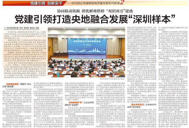 【半岛体育- 半岛体育官方网站- APP下载深圳特区报】协同联动筑圈 排忧解难搭桥 “双招双引”建池 党建引领打造央地融合发展“深圳样本”